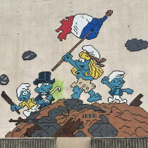 Ce sont 2 amis qui travaillent ensemble. Comme Mr Djoul, ils ont commencé le pixel art urbain en tant que « réactivateurs ». On leur doit notamment la Schtroumpfette guidant le peuple ! Peut-être la plus grande mosaïque de Paris en nombre de pixels.